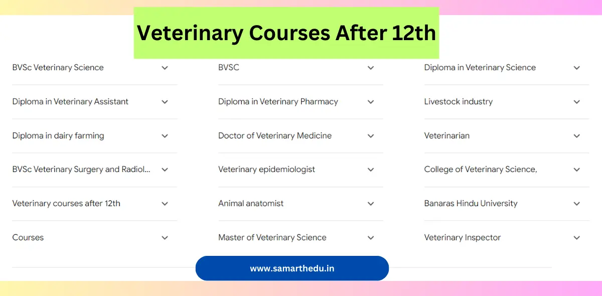 | Course Name | Veterinary Courses After 12th |